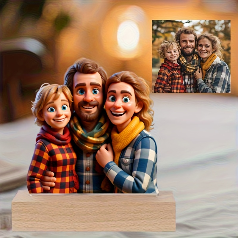TEMU 2D 플랫 - [2D 플랫] 개인 맞춤 2D 만화 아크릴 간판 - AI 디자인 만화 이미지, 데스크탑 장식에 적합 | 만화 스타일 인물 사진 | 내구성이 뛰어난 아크릴, 축제 장식, 부모, 가족 및 친구를 위한 완벽한 휴일 기념품