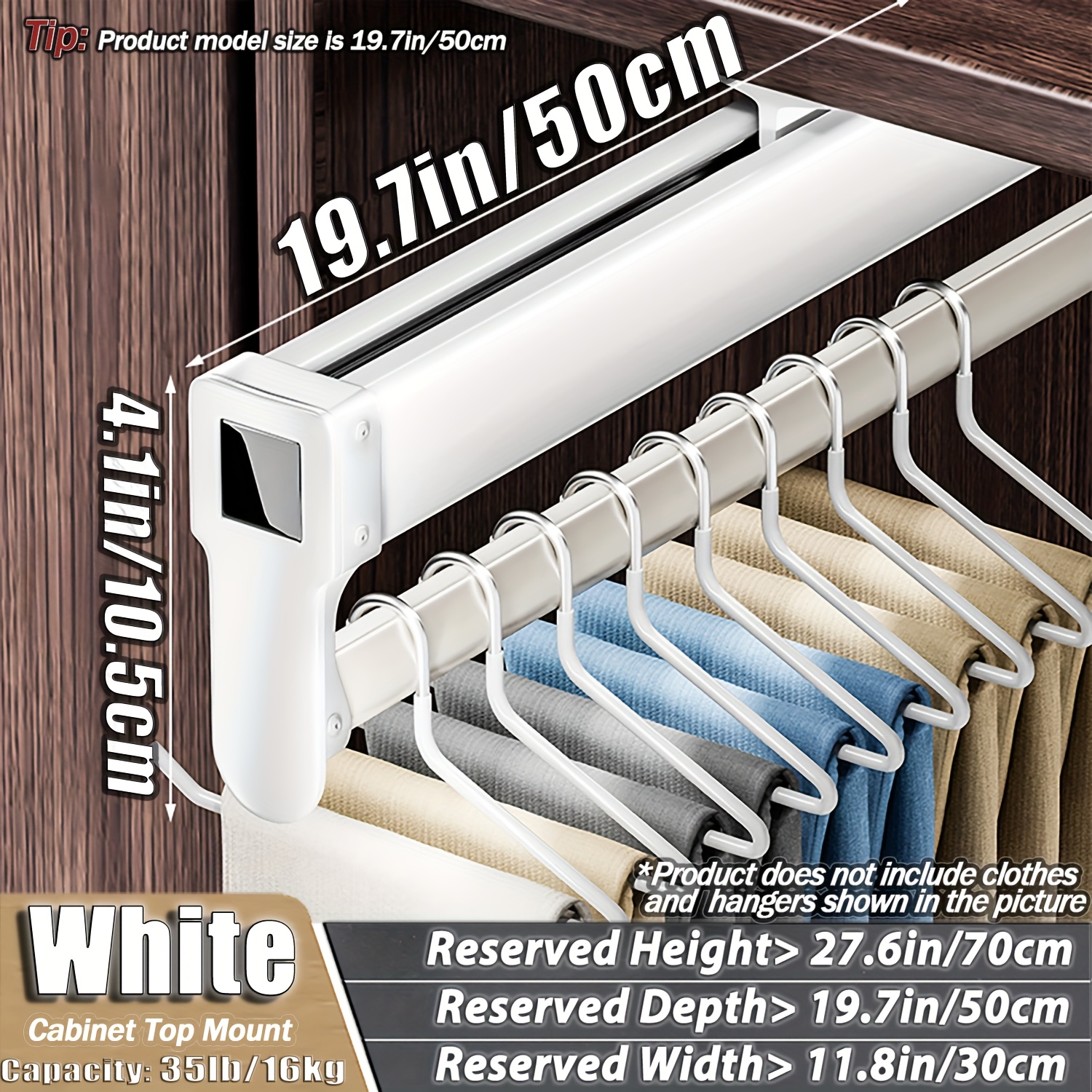 TEMU 조절 가능한 팬츠 행거가 있는 공간 절약형 풀 아웃 선반, 금속 라커드 마감, 다양한 방에 적합, 1 선반, 35 파운드/16 킬로그램 용량, 블랙과 화이트로 제공