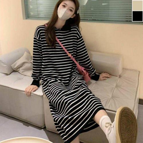 [오너클랜]인기상품 단가라 반집업 카라 니트 원피스 봄가을 긴팔 데일리 캐주얼 드레스 [WFLLNCG_260305]
