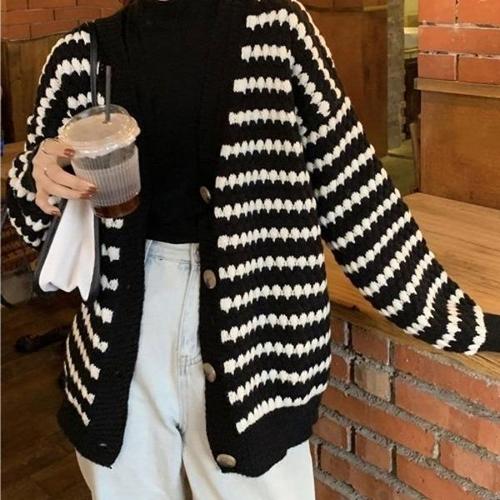2024 신형 V넥 기질 소향풍 여성용 루즈한 스웨터 스웨터 전형 스웨터 외투 도매 특가 가디건 고가백합