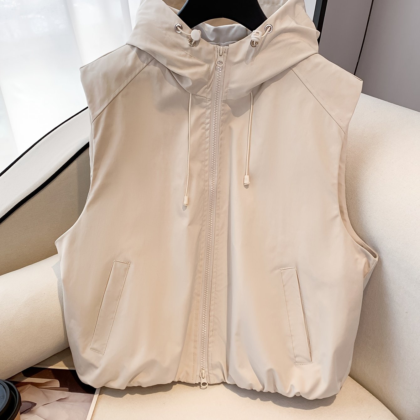 TEMU 여성을 위한 스타일리시하고 캐주얼한 민소매 조끼. 방풍 후드, 루즈핏, 그리고 다정하면서 트렌디한 디자인으로 몸매를 부드럽게 감싸고 젊어 보이도록 디자인되어 아웃도어 및 스트리트웨어에 완벽합니다.