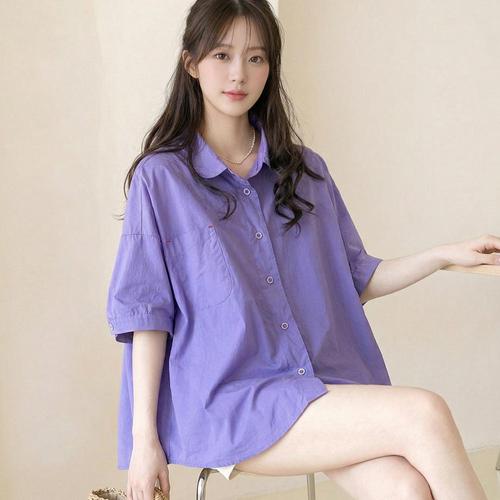 여자 박시핏 미니멀리즘 흰색 셔츠 민무늬 셔츠