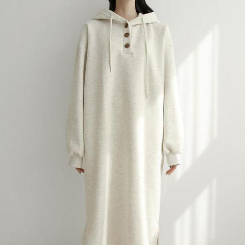 [다잇템]여자 박시핏 슬릿 보온 버튼 후디 롱원피스 (11370861A)