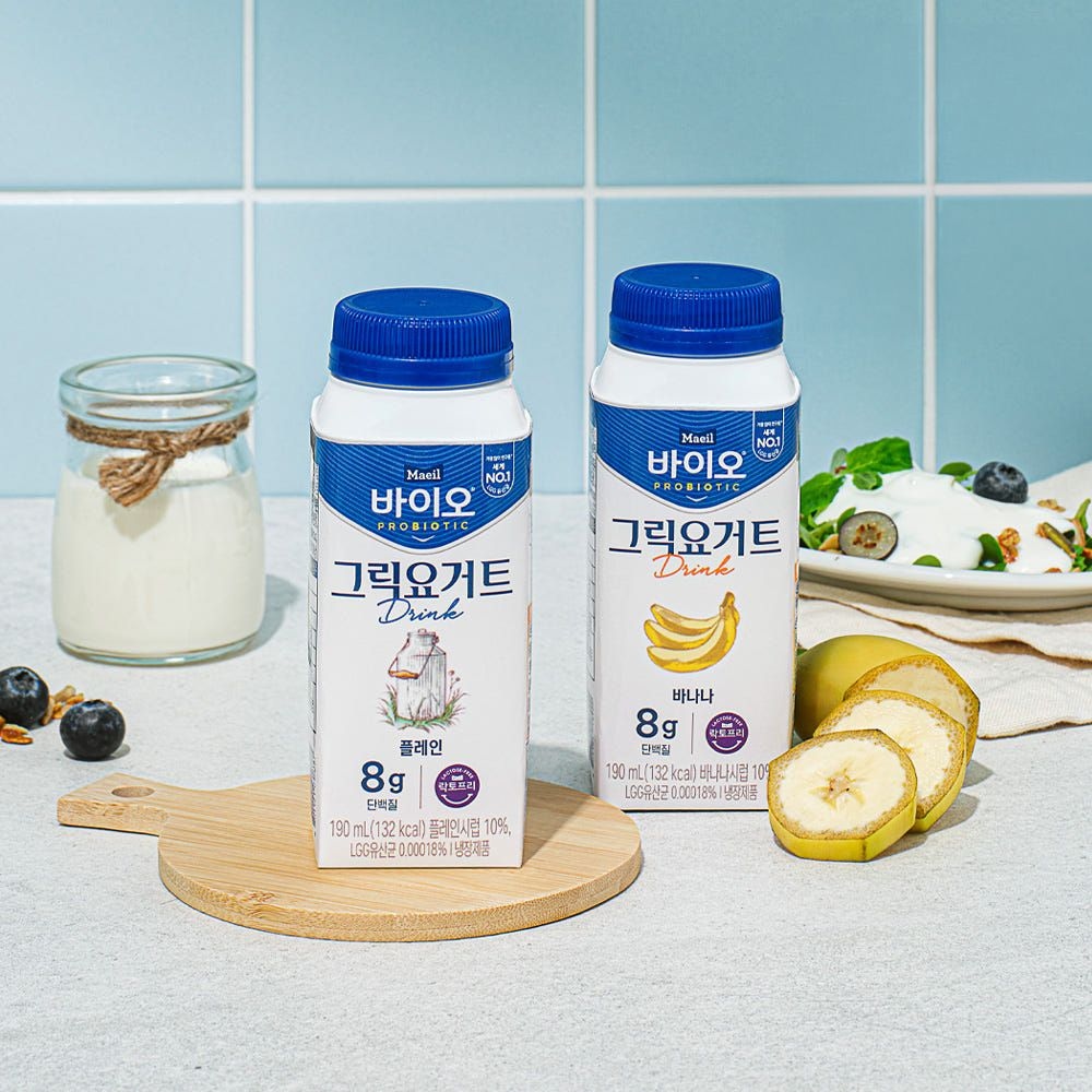바이오 PROBIOTIC 그릭요거트Drink190ml2종(바나나4+플레인4) 총 8입