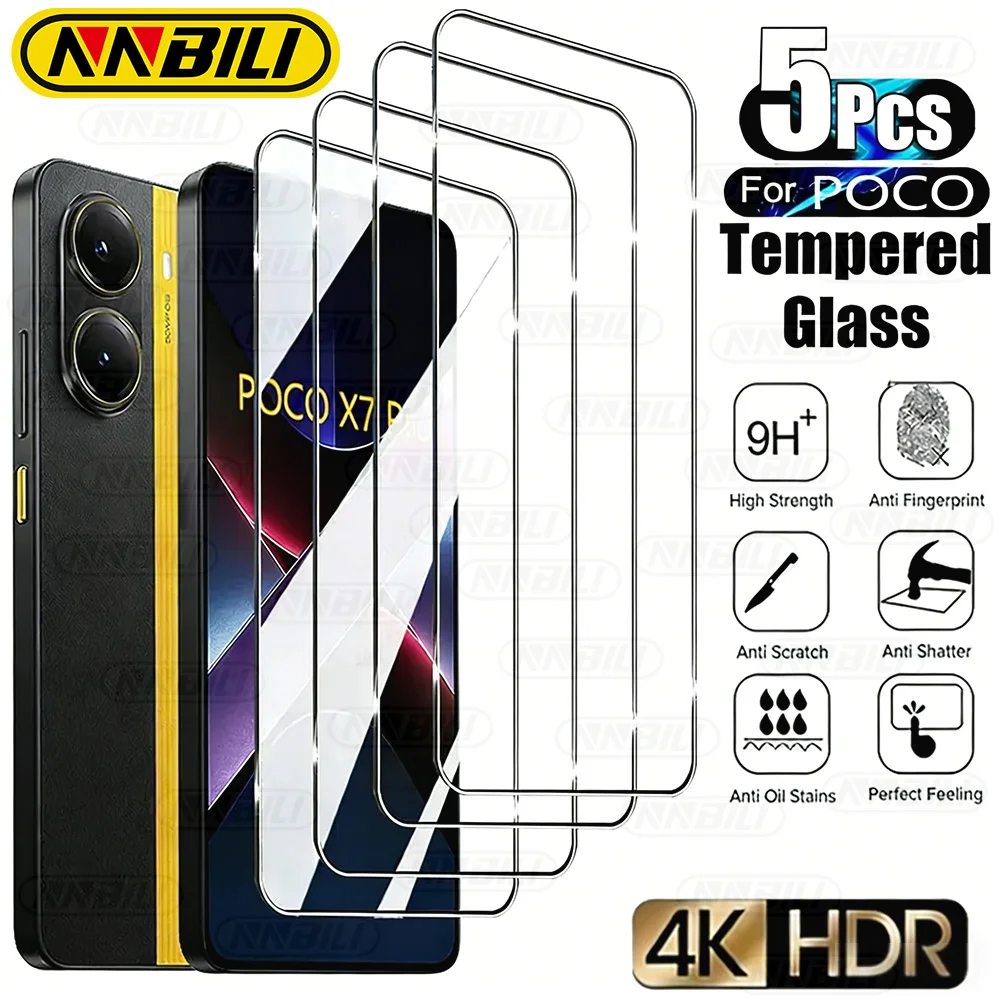 NNBILI 5-1Pcs 9H 강화 유리 Poco X7 Pro 5G 보호 유리 PocoX7Pro Poko Little X7Pro X 7Pro 화면 보호기 HD 필름