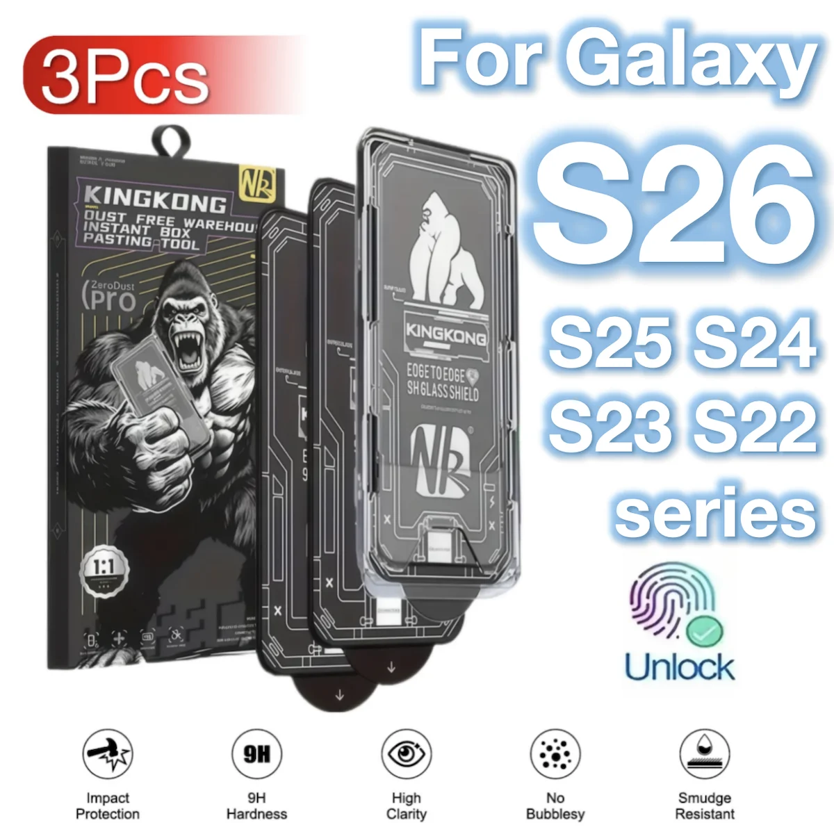 갤럭시 S26/S26플러스/S26울트라/S25/S24/S23/S22용 HD 강화유리 스크린 보호필름 3팩, 9H 경도, 침팬지 호환