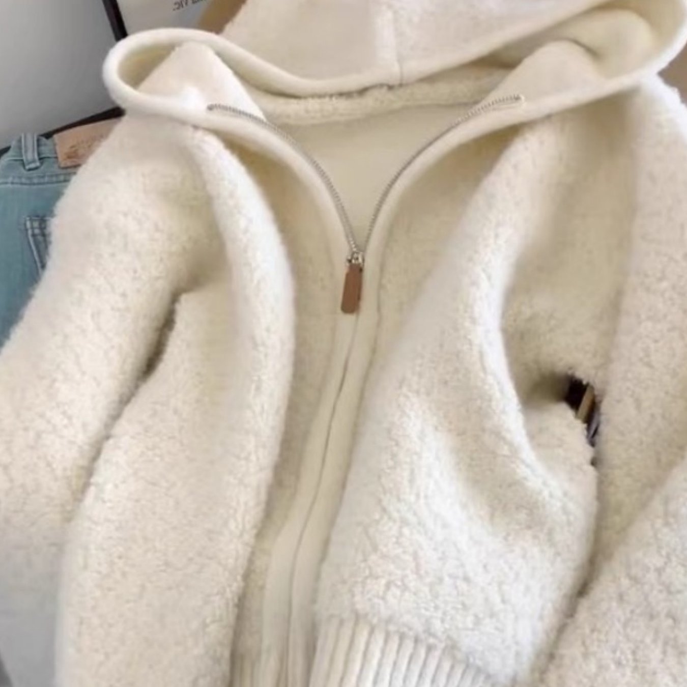 TEMU 고급 오프화이트 후드 지퍼 가디건 여성 가을 겨울 신상 편안한 소프트 왁스 탑