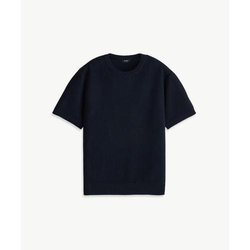 [에스티코]라운드 가네꼬 조직 솔리드 니트_네이비 (세미오버핏)_SKTXB56NSN