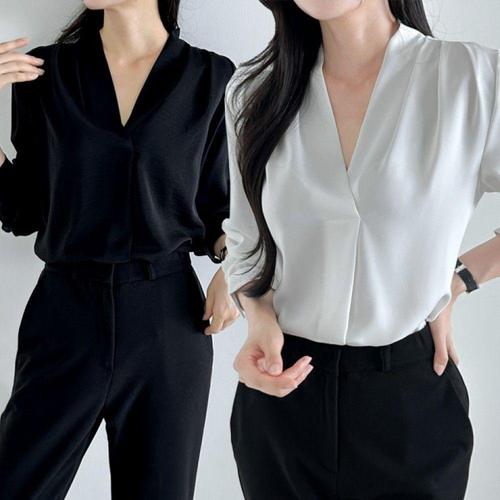 [오노마] ONM 캐주얼 V넥 기본 3컬러 모던 블라우스 루즈핏 셔츠