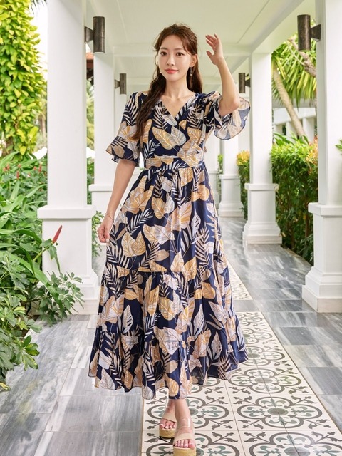 [헤링본] 여성 여름 트로피컬 휴양지 롱 원피스 A라인 루즈핏 빅사이즈 / HI186W